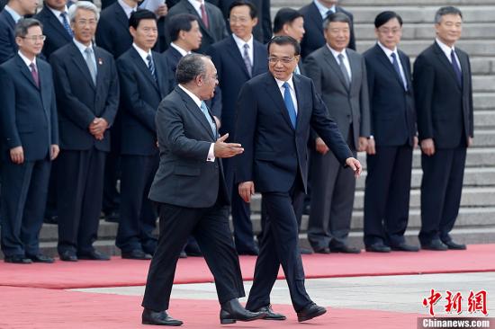 7月6日,中國國務院總理李克強在北京人民大會堂東門外廣場舉行儀式,歡迎來華進行正式訪問的巴布亞新幾內亞總理奧尼爾。中新社記者 盛佳鵬 攝
