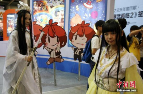 資料圖:5月1日,山西太原,動(dòng)漫愛(ài)好者裝扮成游戲漫畫(huà)人物,吸引了眾人圍觀。韋亮 攝
