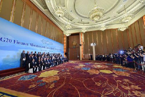 圖說:7月24日,2016年第三次G20財長和央行行長會議與會代表在四川成都合影。新華社發