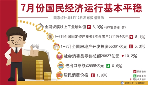 國家統(tǒng)計(jì)局新聞發(fā)言人盛來運(yùn)表示,盡管7月份部分指標(biāo)增速有所放緩,出現(xiàn)了一些波動(dòng),但經(jīng)濟(jì)運(yùn)行仍在合理區(qū)間,經(jīng)濟(jì)運(yùn)行總體平穩(wěn)、穩(wěn)中有進(jìn)、穩(wěn)中向好的大勢(shì)沒有改變。