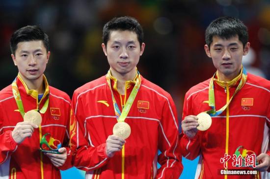 當(dāng)?shù)貢r(shí)間8月17日,2016里約奧運(yùn)男子乒乓球團(tuán)體賽決賽舉行,中國(guó)隊(duì)最終以總比分3:1的成績(jī)戰(zhàn)勝日本隊(duì)獲得冠軍。中新網(wǎng)記者 盛佳鵬 攝