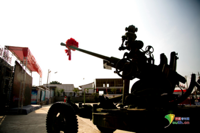 沈家嶺村口的紅色文化廣場上,昔日怒吼的火炮早已安靜。炮管上被系上了紅綢,隨風飄揚。中國青年網記者 孫釗 攝