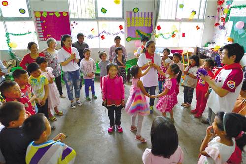 綦江區(qū)志愿者在東溪鎮(zhèn)柴壩中心小學和山區(qū)兒童互動游戲 攝/陳星宇