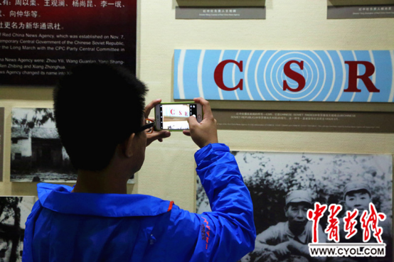 采訪團成員在延安新聞紀念館里拍照 中國青年報·中青在線記者 劉攀 攝