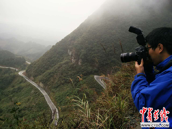 采訪團成員在路邊拍攝“秀山45拐”