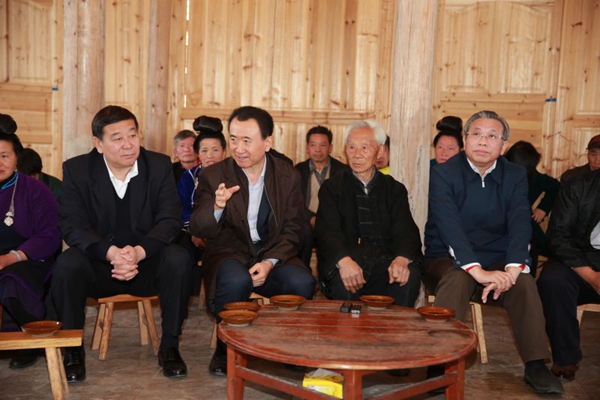2014年12月,王健林決定對(duì)口幫扶貴州省丹寨縣整體脫貧,王健林本人和公司先后十多次赴丹寨調(diào)研當(dāng)?shù)刎毨闆r和扶貧項(xiàng)目,結(jié)合丹寨實(shí)際,確定職業(yè)技術(shù)學(xué)院、旅游小鎮(zhèn)、扶貧專(zhuān)項(xiàng)基金三大扶貧項(xiàng)目,總投入扶貧資金14億元,于2016年初開(kāi)始實(shí)施。丹寨職業(yè)技術(shù)學(xué)院總投資3億元,建筑面積5萬(wàn)平方米,可同時(shí)容納2000名學(xué)生,主要招收丹寨籍學(xué)生,每年擇優(yōu)錄取50%畢業(yè)生到萬(wàn)達(dá)集團(tuán)就業(yè)。丹寨旅游小鎮(zhèn)總投資6億元,將打造成貴州獨(dú)具特色的民族旅游名片,不僅創(chuàng)造經(jīng)濟(jì)效益,而且將新增2000至3000個(gè)永久就業(yè)崗位,緩解丹寨縣城就業(yè)難的問(wèn)題。萬(wàn)達(dá)專(zhuān)項(xiàng)扶貧基金規(guī)模5億元,由萬(wàn)達(dá)投資公司理財(cái),每年保底5000萬(wàn)元收益,無(wú)償分配給丹寨縣產(chǎn)業(yè)扶貧無(wú)法惠及的1萬(wàn)名孤、殘、重病等特殊貧困人群。萬(wàn)達(dá)丹寨扶貧產(chǎn)業(yè)、教育、基金并舉,短期、中期、長(zhǎng)遠(yuǎn)兼顧,對(duì)癥下藥,創(chuàng)造中國(guó)精準(zhǔn)扶貧新模式,兩年實(shí)現(xiàn)丹寨縣貧困人口全部脫貧,所有項(xiàng)目2017年投入運(yùn)營(yíng)后,將使丹寨縣整體經(jīng)濟(jì)發(fā)生較大改變,實(shí)現(xiàn)可持續(xù)發(fā)展,永久擺脫貧困。