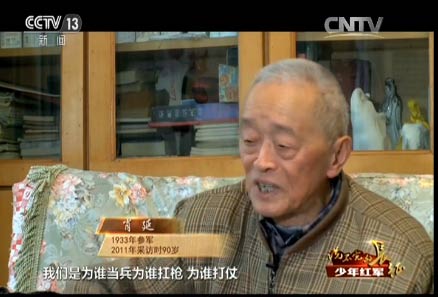 王述文的參軍之路就沒有那么順利了。他八歲參加兒童團,拿著紅纓槍站崗放哨,跟著自衛隊打土豪、分田地,1933年,紅軍到了王述文的家鄉,四川巴中,這一年他九歲。他決定參加紅軍,可沒成想,人家嫌他小,不要。當時王述文覺得只有參加紅軍才有出路,所以就哭、鬧。面對這個又哭又鬧的孩子,紅軍沒有辦法,只能暫時讓他跟著部隊。有一天走了120里路,到晚上點名,點到最后連長也沒點王述文的名字,王述文就“哼”地一聲,連長這次叫了他的名字。