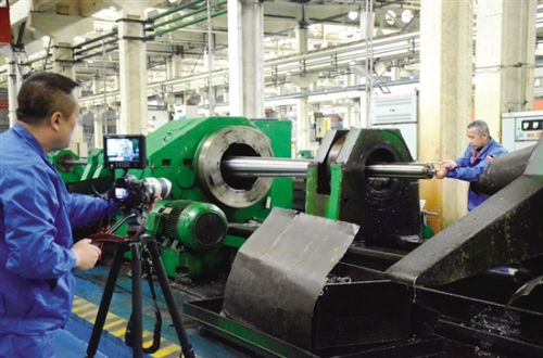 戎鵬強從進廠第一天開始就把技能提升作為目標。通過幾十年如一日的摸索實踐,他總結了“摸、聽、看、量”四字訣。所謂“摸”,主要是摸刀桿,根據摸刀桿判斷刀在行走時的狀態;“聽”就是聽機床發出的聲音和硫化油流動的聲音,判斷機床運轉是否正常;“看”是要看鐵屑的形狀和電流表的讀數;“量”是測量刀桿每分鐘行走的距離和內控的尺寸。現在的戎鵬強練就了以“手”當“眼”的絕活兒,只要用手握住刀桿,通過感受刀頭的震動,他就能對加工進度做到心中有數。