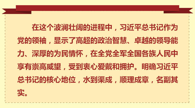“站在新的歷史起點(diǎn)、肩負(fù)新的歷史使命,確立習(xí)近平同志黨中央的核心、全黨的核心地位,是實(shí)踐的選擇、歷史的選擇,是全黨的選擇、人民的選擇,是黨心所向、人心所向!敝醒胛瘑T們這樣說。