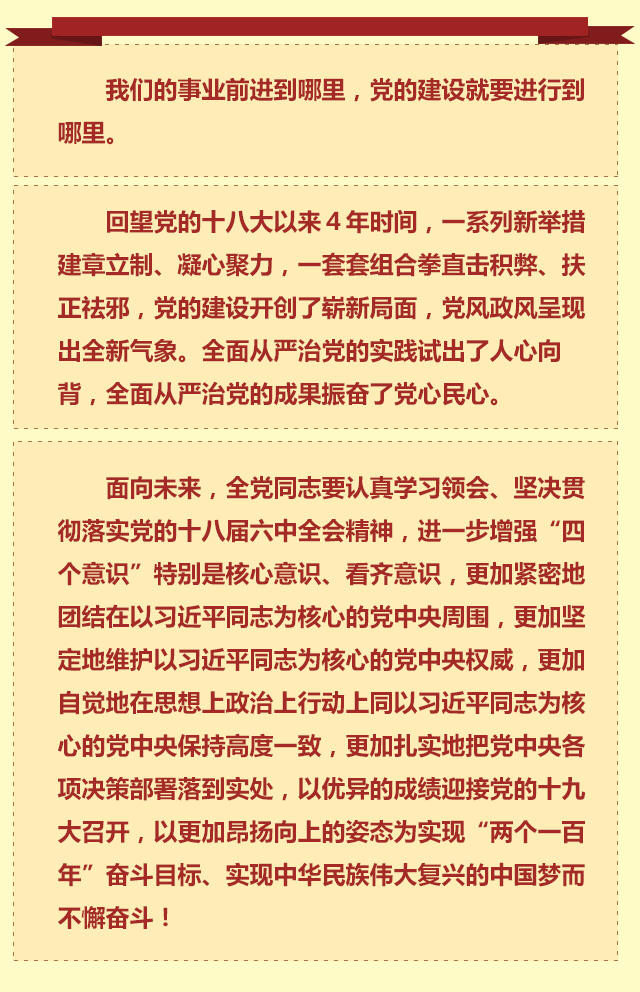 六中全會(huì)的召開,對(duì)于推進(jìn)全面從嚴(yán)治黨,解決黨內(nèi)存在的突出矛盾和問題,不斷增強(qiáng)黨自我凈化、自我完善、自我革新、自我提高能力,意義重大。只有深刻認(rèn)識(shí)領(lǐng)會(huì)全會(huì)的精神要義,才能在實(shí)踐中堅(jiān)定不移落實(shí)《準(zhǔn)則》和《條例》的各項(xiàng)規(guī)定。