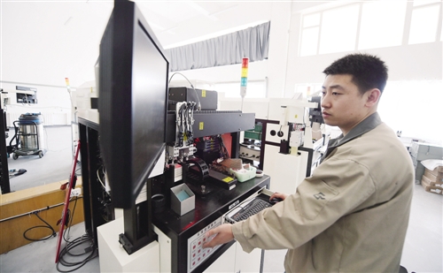 在吉林省光電子產(chǎn)業(yè)孵化器的一間工廠內(nèi),工作人員在調(diào)試激光調(diào)阻機(jī)。 新華社記者 張 楠攝