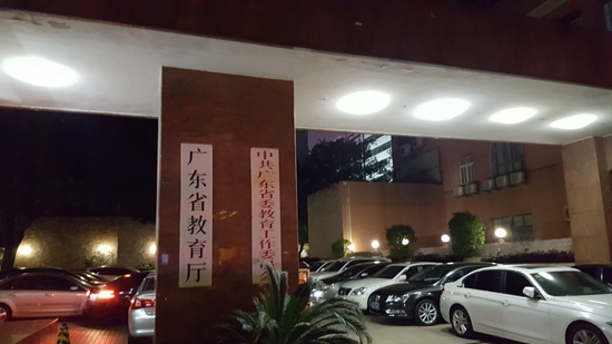 夜幕下的廣東省教育廳大門口
