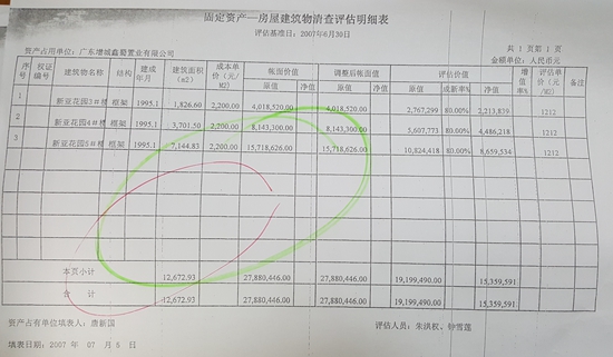 2007年7月25日,廣州廣誠資產(chǎn)評估有限公司對鑫蜀公司出資的上述3棟樓219套房產(chǎn)進(jìn)行評估,出具了穗廣城評報字(2007)第07021號資產(chǎn)評估報告;對溫智洺實物投資進(jìn)行了評估,并出具了穗廣城評報字(2007)第07027號資產(chǎn)評估報告。