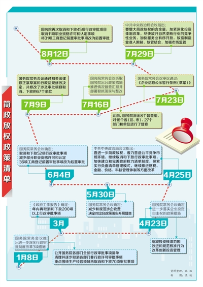 8月12日,國(guó)務(wù)院印發(fā)《關(guān)于取消和調(diào)整一批行政審批項(xiàng)目等事項(xiàng)的決定》,進(jìn)一步“簡(jiǎn)政放權(quán)”。
