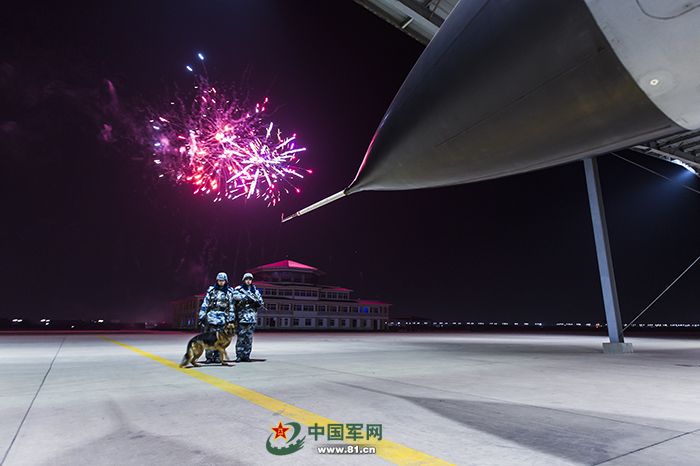零點(diǎn)過后,城市的煙火漸漸稀松,守歲的人們安心睡去,年輕的戰(zhàn)士和無言的戰(zhàn)友繼續(xù)巡邏在戰(zhàn)機(jī)旁!