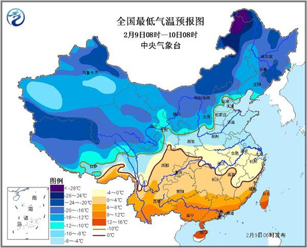 雖然雨雪已經消退,但冷空氣帶來的降溫卻在繼續深入,大風降溫將波及南方更多區域,中央氣象臺預計,9日至11日凌晨,中東部地區氣溫較低,其中,江南中北部最低氣溫將達到-2~0℃,江南南部和華南北部最低氣溫將達到2~5℃。9日至10日,長江下游以北地區有4~6級偏北風,東部和南部海區風力有6~8級。中央氣象臺于今天6時繼續發布寒潮藍色預警。