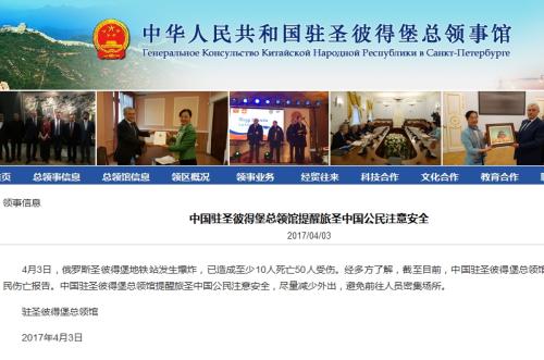 中新網4月4日電 4月3日,俄羅斯圣彼得堡地鐵站發生爆炸,已造成數十人傷亡,中國駐圣彼得堡總領館官網發布消息稱,暫無中國公民傷亡報告,并提醒旅圣中國公民注意安全