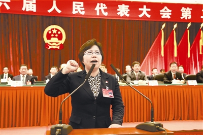 3月28日,北京市海淀區委常委、區紀委書記肖韻竹在當選區監委主任后宣誓。張洪軍 攝