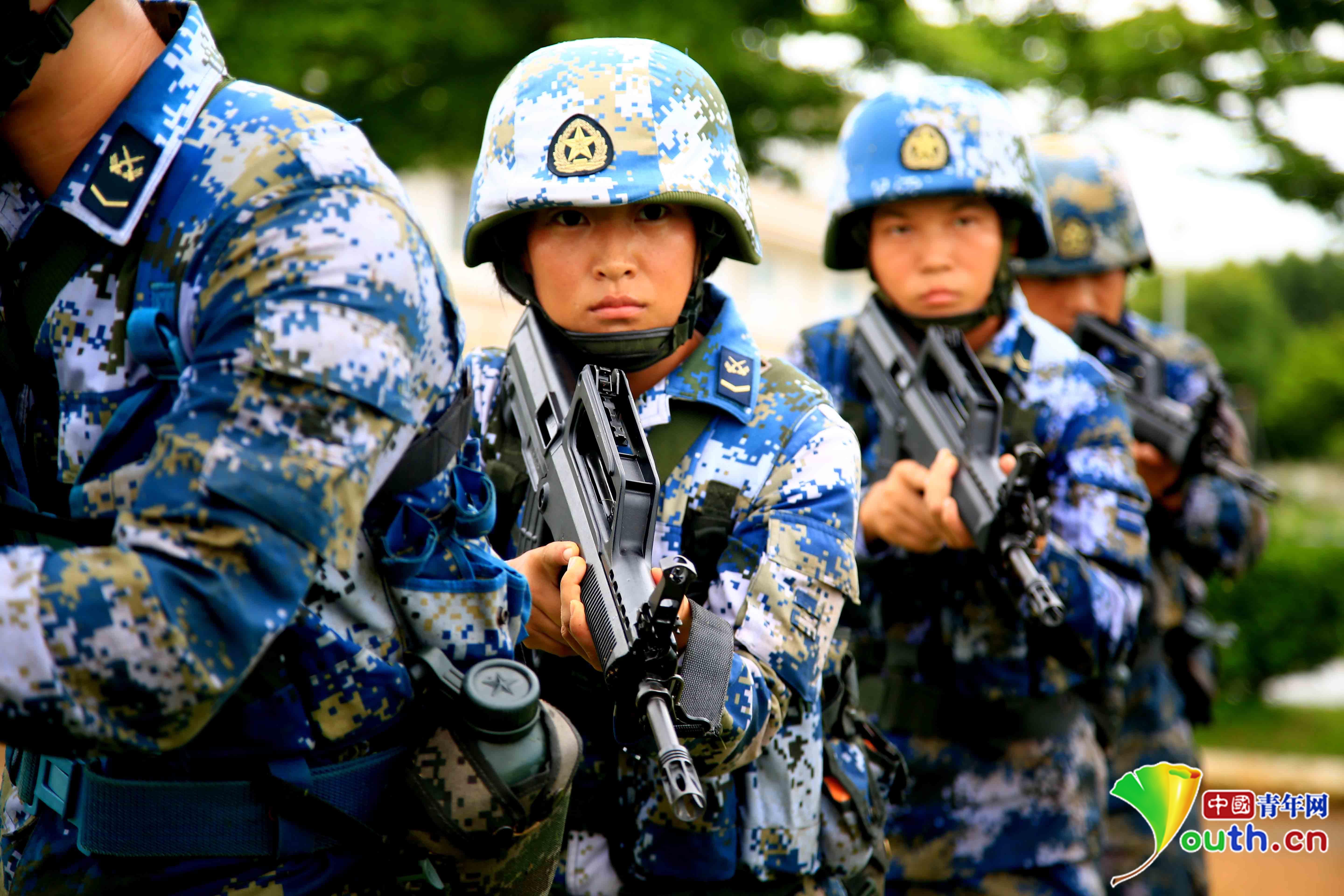并沒有因?yàn)槭桥湍軌蛟诤\婈憫?zhàn)隊中得到額外的關(guān)照。“她們的訓(xùn)練是和我們完全一樣的。”一位海軍陸戰(zhàn)隊的男兵班長告訴中國青年網(wǎng)記者。在特種射擊的訓(xùn)練中,蘇布達(dá)與其他戰(zhàn)士表現(xiàn)出了同樣高水平的軍事素養(yǎng)。令人眼花繚亂的戰(zhàn)術(shù)動作中,蘇布達(dá)熟練的行進(jìn)、掩護(hù)、射擊。“兩棲霸王花”的稱號就是這樣從一次次的摸爬滾打中聲名遠(yuǎn)揚(yáng)。