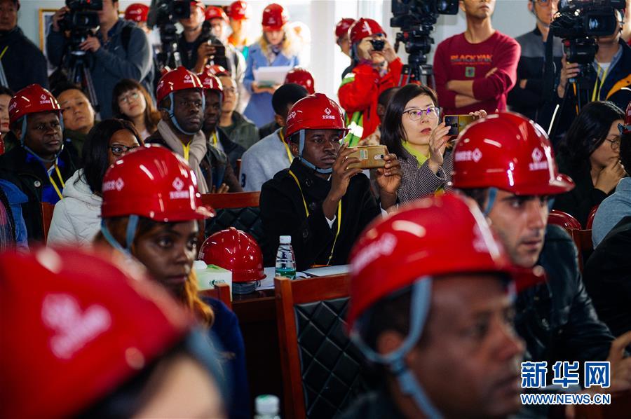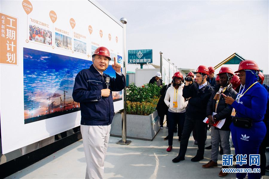 10月16日,外國記者在北京新機場建設工地采訪。當日,近40家參加十九大新聞報道的中外媒體的60多名記者前往北京大興采訪新機場建設項目。自10月12日起,十九大新聞中心組織包括北京中軸線、基層黨建、故宮在內15條線路的采訪活動,幫助中外記者更好地了解中國發展成就。新華社記者 劉金海 攝