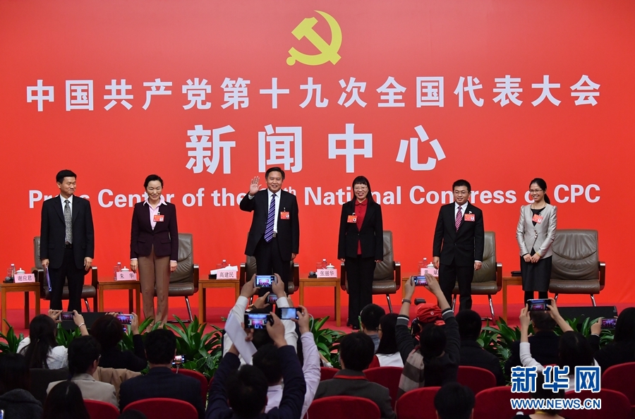 10月23日,中國(guó)共產(chǎn)黨第十九次全國(guó)代表大會(huì)新聞中心舉行主題為“打好生態(tài)環(huán)保攻堅(jiān)戰(zhàn)”的集體采訪活動(dòng)。福建省環(huán)保廳黨組書記、廳長(zhǎng)朱華,河北省環(huán)保廳黨組書記、廳長(zhǎng)高建民,遼寧省環(huán)境科學(xué)研究院院長(zhǎng)張麗華,湖南省張家界市環(huán)保局環(huán)境監(jiān)測(cè)中心站分析室主任黃斌,江蘇省環(huán)境監(jiān)測(cè)中心副主任胡冠九接受采訪。新華社記者 李鑫 攝