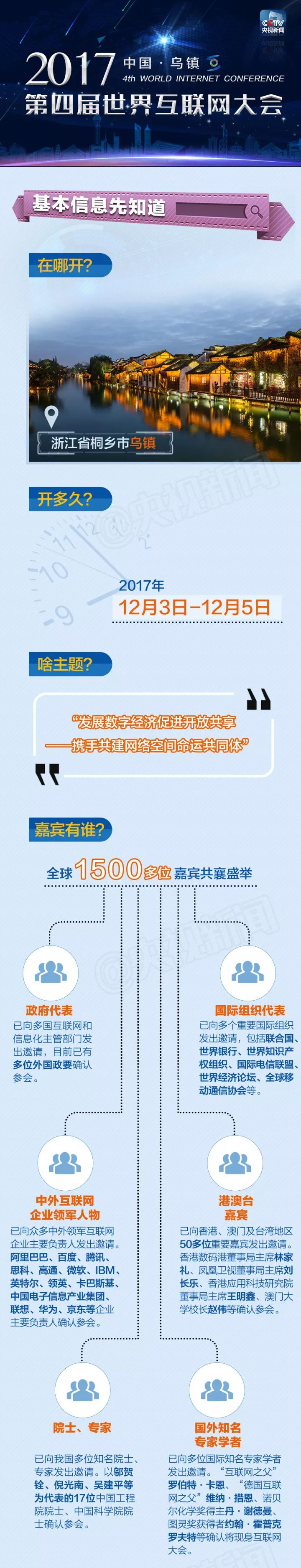12月3日,第四屆世界互聯網大會將在浙江烏鎮拉開帷幕!盀蹑偡鍟弊鳛槿蚧ヂ摼W界一年一度的盛事,已經連續舉辦三屆,成功搭建了中國與世界互聯互通的國際平臺以及國際互聯網共享共治的中國平臺。與前三次相比,本屆大會將有哪些看點?一起來“圖”個明白。