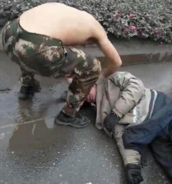 1月3日,一段視頻引起網友熱議。畫面中一位老人倒在地上,頭部受傷流血,而身旁一名光著膀子的消防官兵正蹲在地上用衣服墊著老人的頭部進行救助,網友們看到后紛紛點贊轉發并留言好評。記者通過江西新余市委宣傳部聯系上這位消防官兵,他叫張劍鋒,是新余經濟開發區公安消防大隊供水班的副班長,今年21歲,江西景德鎮人。