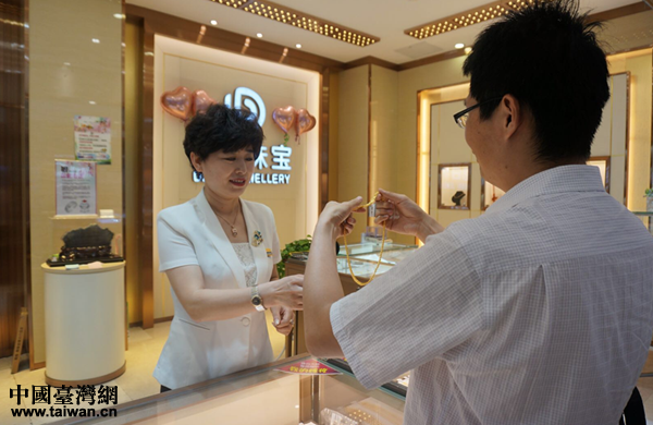 楊秀娟展示“焊接首飾”技能。(中國臺灣網 雍紫薇 攝)