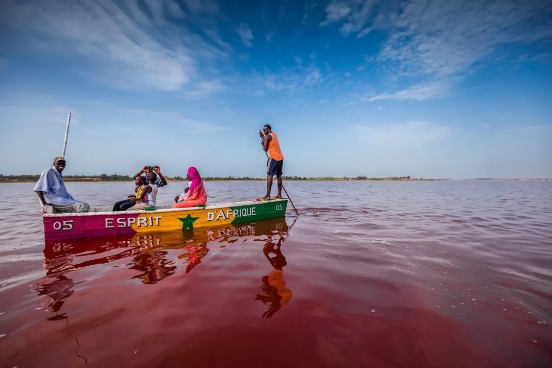 △玫瑰湖:湖里的杜氏鹽藻將水變成了粉紅色,湖中部分區域鹽含量高達40%。距達喀爾市區僅35公里左右路程