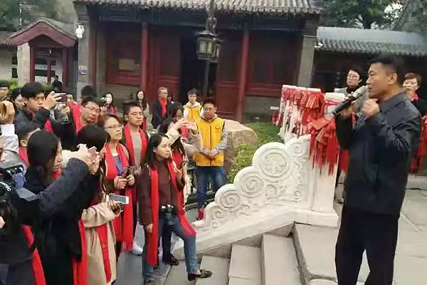 兩岸新媒體人參訪天津天后宮。(中國臺灣網 陳佳慧 攝)