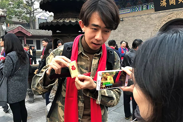 臺灣媒體朋友展示寄予美好祝福的天后宮福卡。(圖片來源:“海研智庫”微信公眾號)
