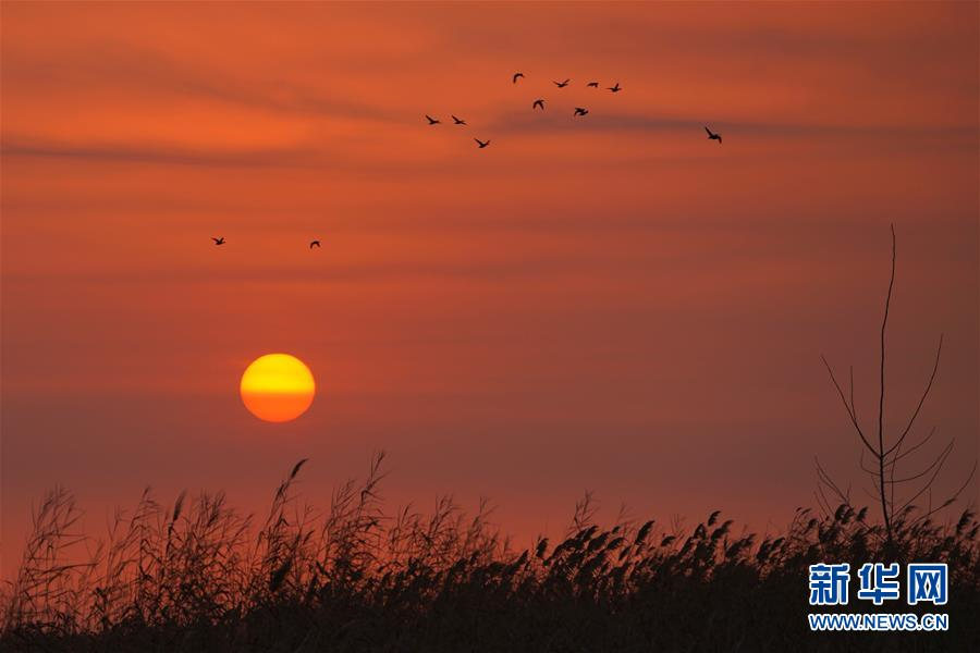 河北雄安新區安新縣白洋淀日出。(來源:新華社)