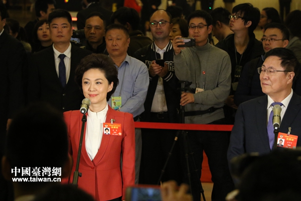 海霞委員回答記者提問(wèn)。(中國(guó)臺(tái)灣網(wǎng) 雍紫薇 攝)