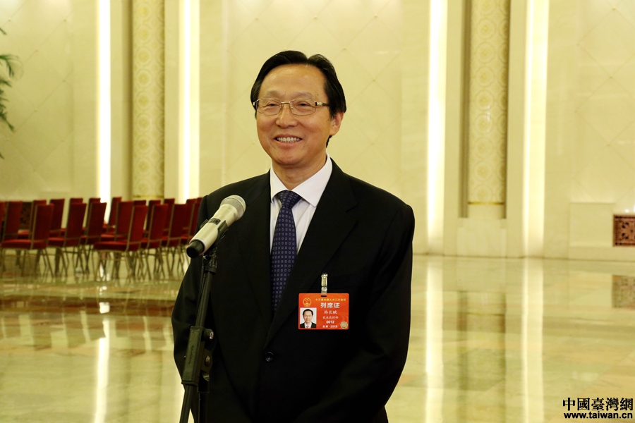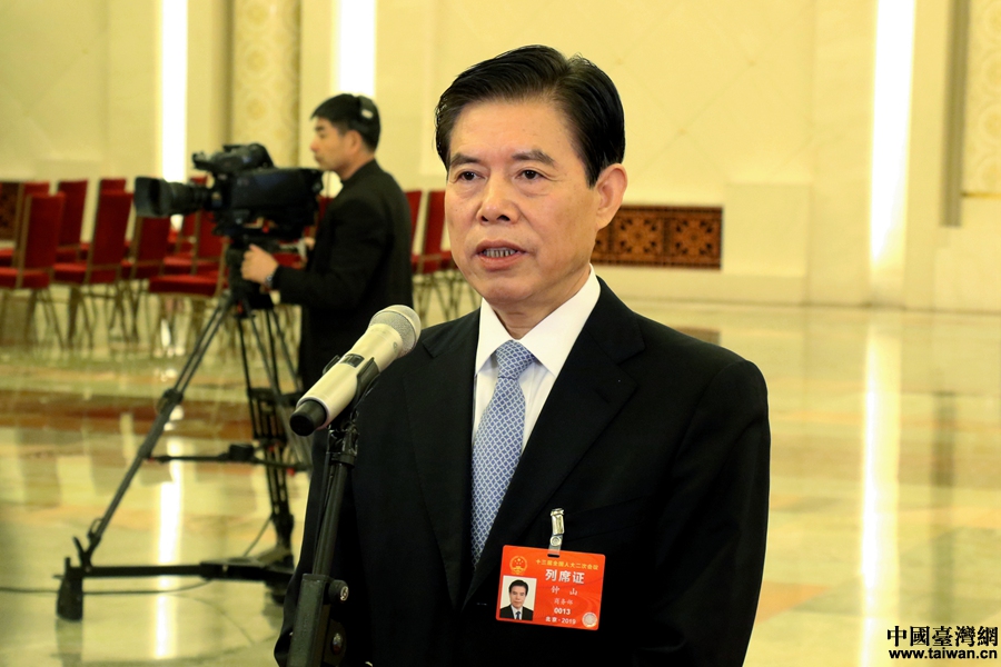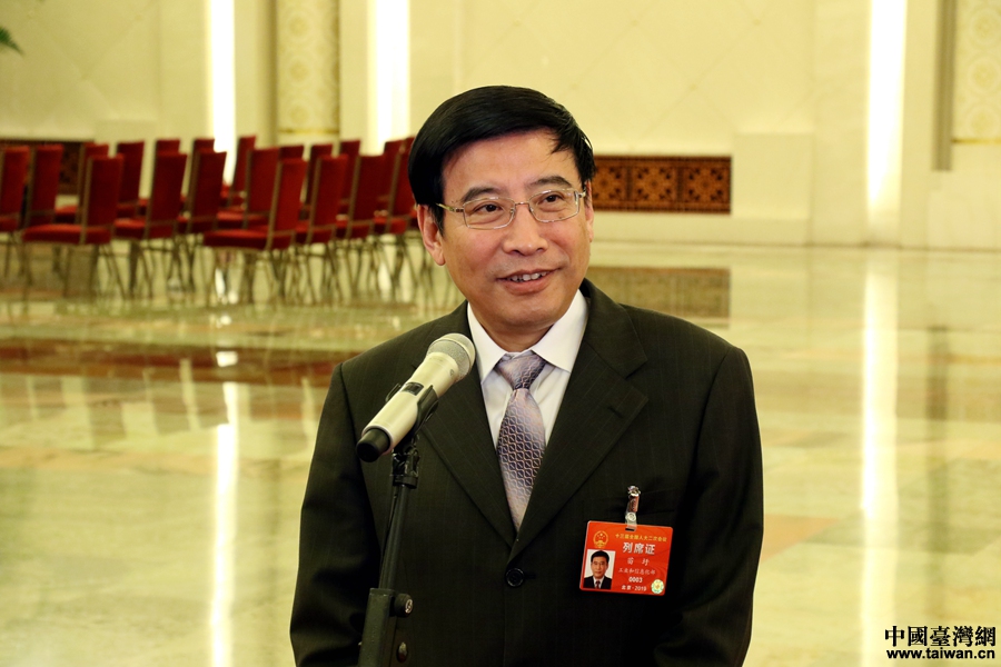中共中央臺辦、國務院臺辦主任劉結一在“部長通道”接受采訪。(中國臺灣網 尹賽楠 攝)
