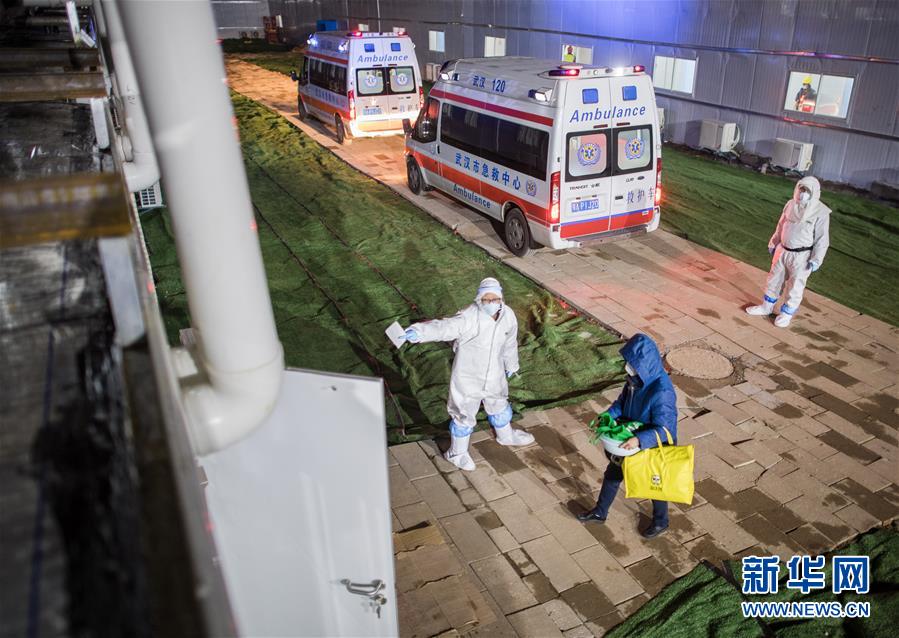 2月8日,在武漢雷神山醫院,患者步入病房。 新華社記者肖藝九攝