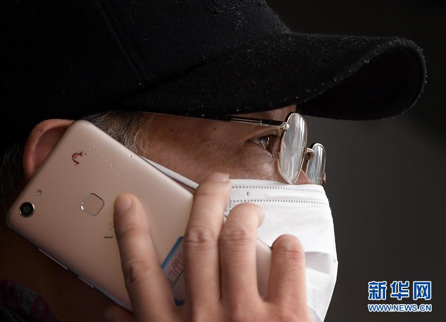 2月10日,武漢市江漢區德望社區居委會副主任熊威向街道請求安排車輛和人員轉運一名確診患者。 新華社記者李賀攝