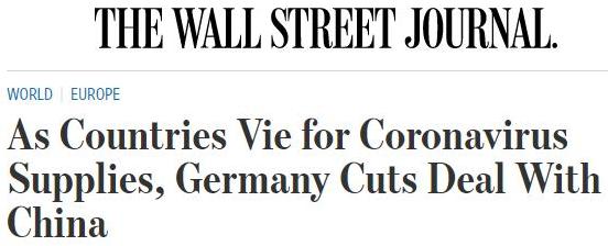 △在各國爭奪防疫用品之際,德國與中國簽訂了決定性協議(圖片來源:《華爾街日報》)