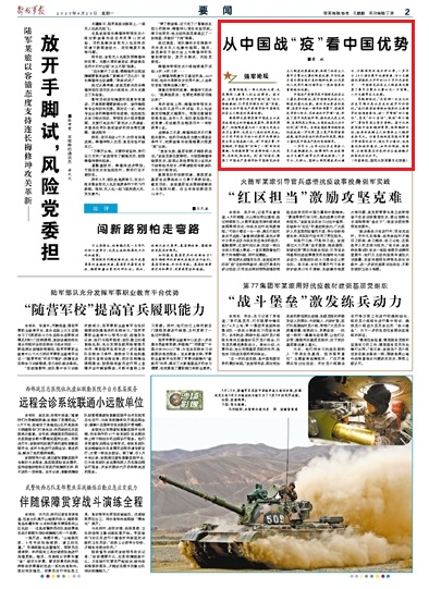 疫情防控是一場大戰和大考,也是鍛煉人教育人的生動課堂。連日來,全軍各部隊利用中國戰“疫”這個特殊教材,引導官兵聯系戰“疫”實踐,深刻認識中國共產黨領導和中國特色社會主義制度的顯著優勢。