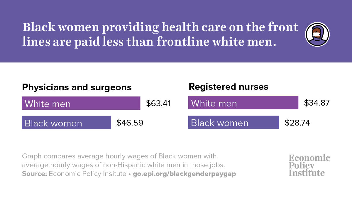 △身處抗疫一線的非洲裔女性醫生和護士,獲得的時薪少于白人男性 圖片來源:經濟政策研究所