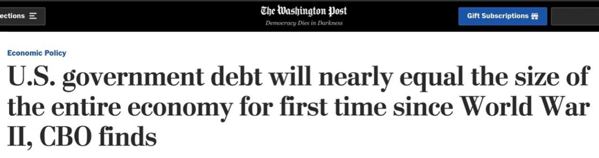 △《華盛頓郵報》:二戰以來,美國債務將首次超過其經濟體量