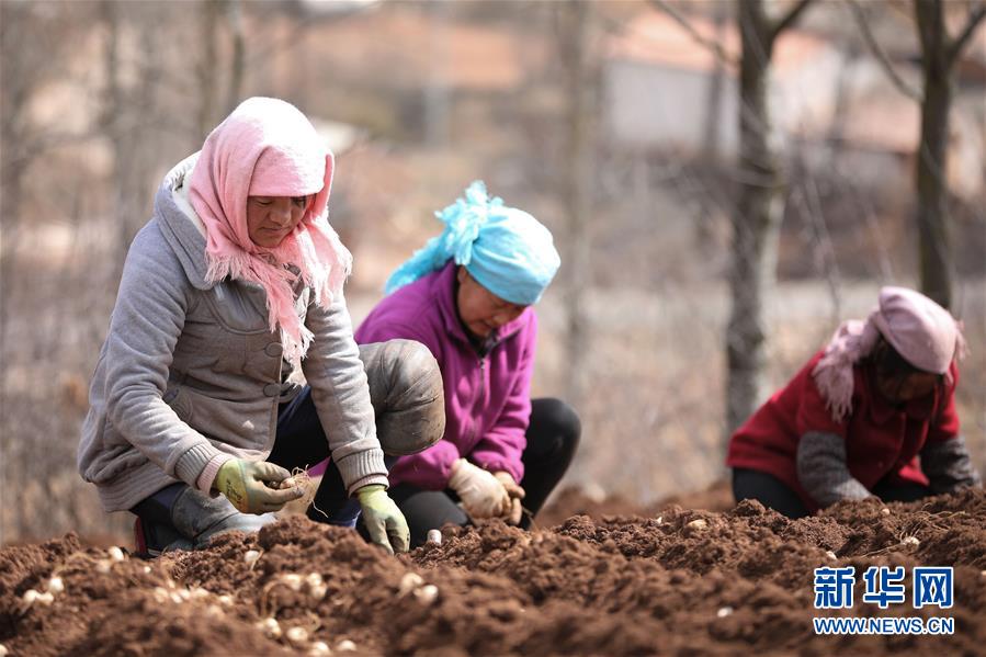 3月11日,甘肅省定西市渭源縣元古堆村村民在種植百合。新華社發(fā)(馬希平 攝)