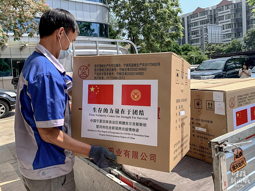 △今年7月份,寧夏回族自治區向吉爾吉斯斯坦楚河州捐贈了3萬只一次性醫用口罩。