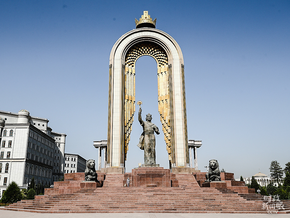 △當天的會議決定,由塔吉克斯坦接任上合組織輪值主席國。這是塔吉克斯坦民族和解與復興紀念碑,2014年習近平首次訪問該國時,曾到此獻花圈。