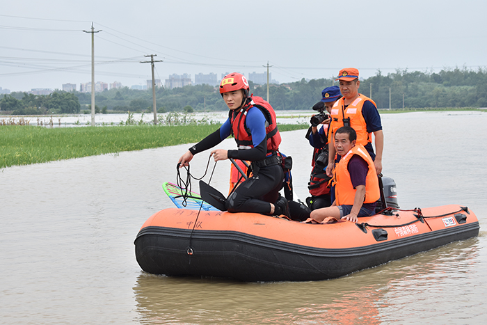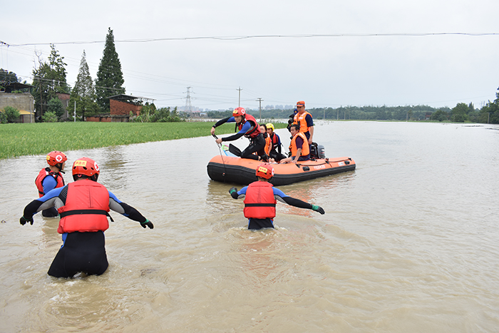 雖然已經經受過三沱江和三岔湖自然水域救援演訓,但是特勤大隊這支老隊伍能否應對新領域實戰,王鵬和他的戰友們心中也不免敲小鼓。然而災情不會等待他們的成熟,8月的四川金堂縣洪水將他們拉上前線。