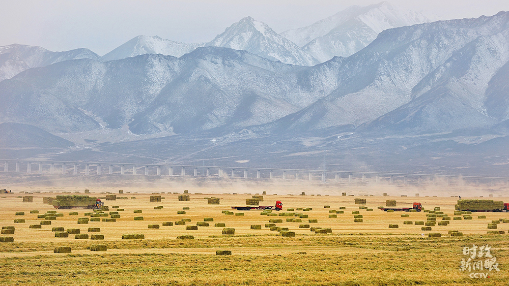 △11月中旬,祁連山下山丹馬場20余萬畝燕麥草進入收獲尾聲。各農業單位人機齊上,確保顆粒歸倉、寸草歸垛。