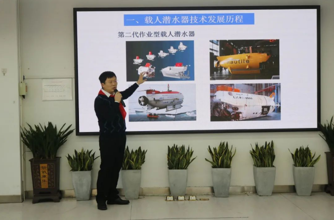 在啟動儀式上,楊波通過《載人潛水器》主題講座,向?qū)W生們講述了我國載人潛水器的發(fā)展歷程,分享了深海勇士在探索深潛的奮斗路上克服困難的種種經(jīng)歷。