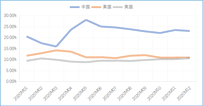 2020年,歐盟與中國實現貿易總額5860.32億歐元,同比增長4.46%,中國在歐盟對外貿易總額中占比達到16.07%,同比上升2.3個百分點,中國成為歐盟最大貿易伙伴。美國和英國在歐盟對外貿易總額中占比分別為15.22%和12.20%,為歐盟第二大和第三大貿易伙伴。中國在疫情最為嚴重的2、3月份降為歐盟第三大貿易伙伴;4月份,隨著中國復工復產復市的推進,以及疫情在全球范圍內的擴散,中國一躍成為歐盟第一大貿易伙伴,并維持至2020年12月。美國則由4月開始降為歐盟第二大貿易伙伴,直至2020年結束。