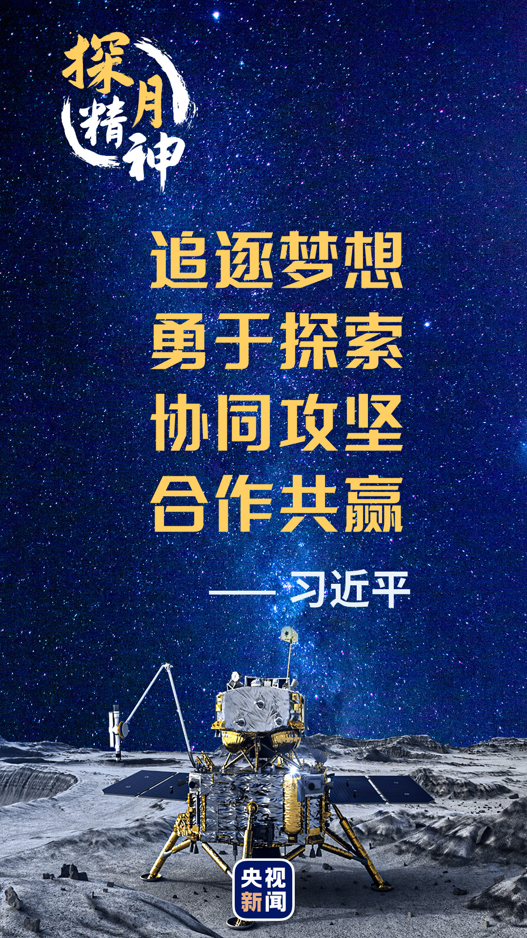 在推動實施好探月工程四期、開啟星際探測新征程的道路上,讓“探月精神”繼續(xù)引領我們,勇攀科技高峰,為實現(xiàn)航天夢、中國夢而奮發(fā)進取、建功立業(yè)。