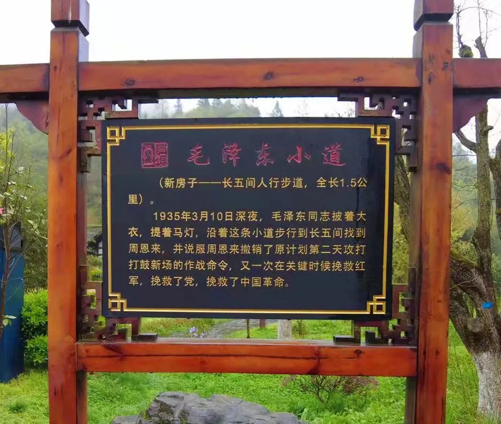1935年3月10日夜,在茍壩村一條崎嶇狹窄的小道上,毛澤東同志手提馬燈,連夜去找周恩來同志再商紅軍將要進行的一場戰役的作戰計劃。一場戰役看起來不是重大決策,但當時當事,這場戰役與中國革命命運緊緊相連,因而事關重大。歷史的“關節點”常常出現在不經意間,茍壩的這條“小道”連著的正是中國革命的“正道”。今天,人們將毛澤東同志走過的這條小道,親切地稱為“毛澤東小道”。