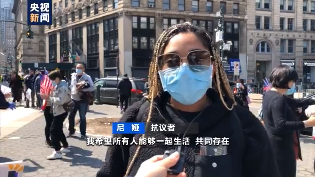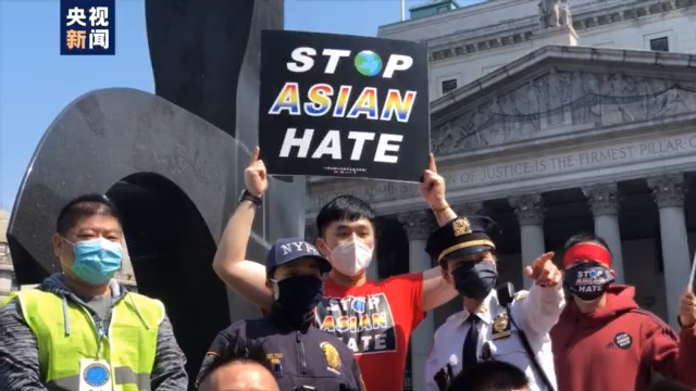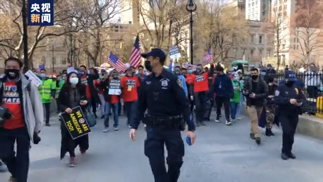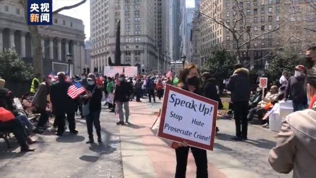 央視記者 徐德智:紐約在過去一段時間每個周末都有這樣的抗議示威活動,今天這一場看起來規模是最大的一場。之前就有預告說,今天大約有200個團體會參與到這一次的反歧視亞裔的活動當中來,但實際上根據我們剛才跟現場組織者的溝通,他們表示今天最多可能會有500個團體加入到游行示威。那么除了我身后的廣場站滿了人之外,實際上在廣場街道的另外一邊,人們其實也在前面站滿了整個街道。